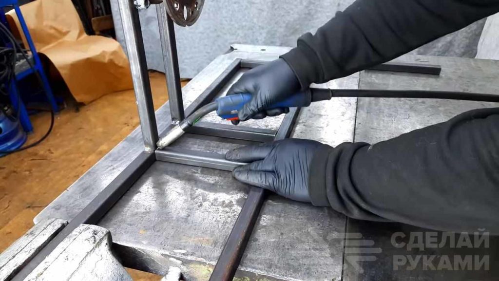 Привариваем ее на свое место. Затем зачищаем сварные швы, и можно красить собранную конструкцию.