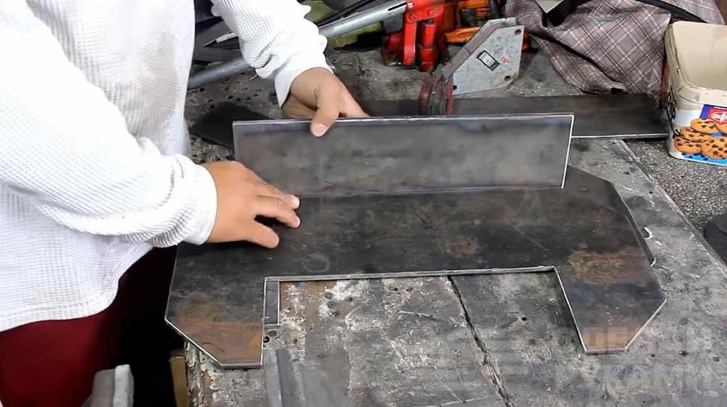 На следующем этапе собираем станину и корпус станка. Для этого вырезаем листовую сталь необходимого размера по форме буквы «С». Затем вырезаем все стенки в виде пластин.