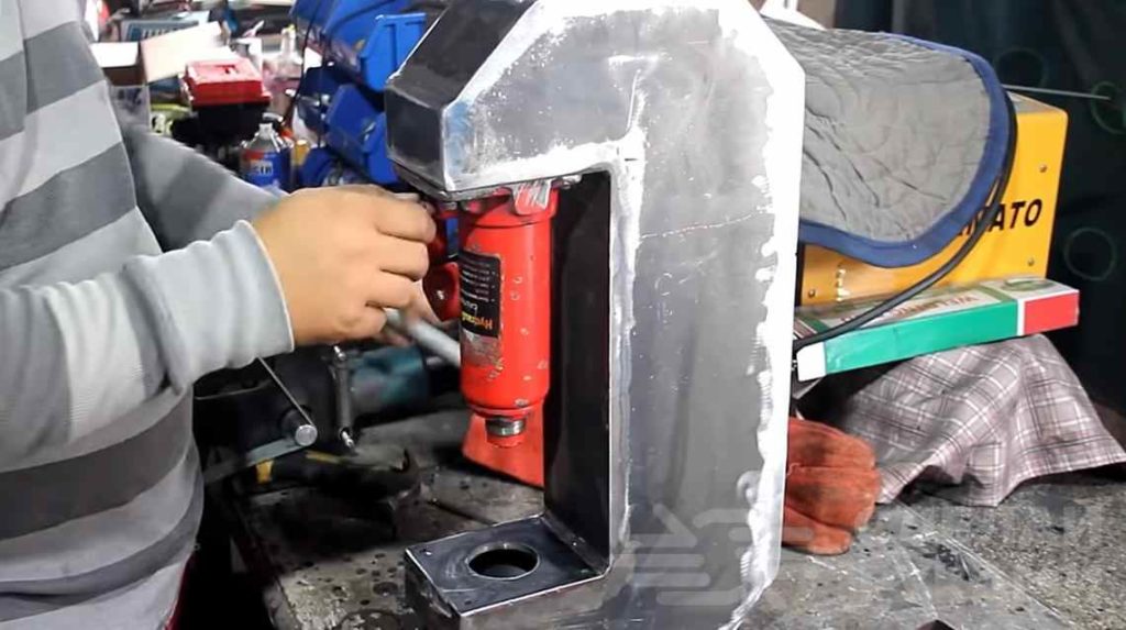 Но куда лучше использовать гидравлический пресс. Изготовить его можно из автомобильного домкрата.