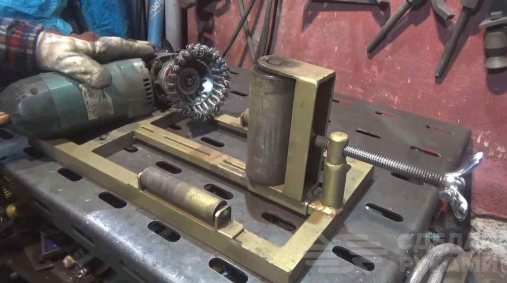 Очистка различных плоских металлических поверхностей может занять мало времени, но очистка профильных труб уже будет на порядок сложнее и дольше. В данном обзоре мы рассмотрим, как изготовить станок для чистки труб при помощи жесткой корд щетки и УШМ.
