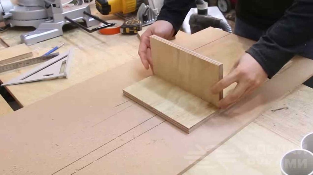 На следующем этапе нужно отрезать заготовки из фанеры. Само основание органайзера автор сделал из куска фанеры толщиной 18 мм и размером 250*550 мм.