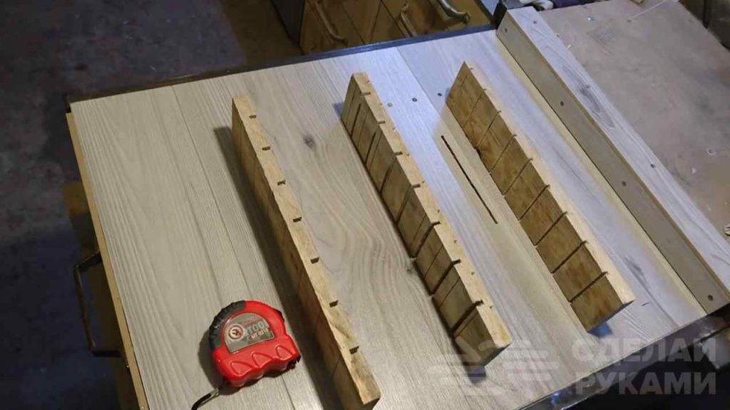 Сначала отпиливаем по размеру три доски и делаем в них пазы, в которые будут вставляться пластиковые заглушки.