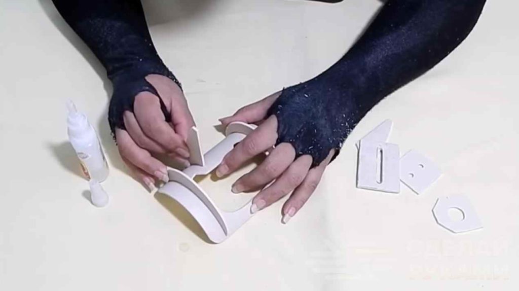 Далее все подготовленные детали необходимо будет склеить между собой. Для этого можно использовать быстросохнущий клей для пластика.