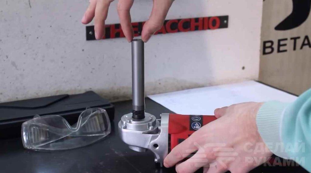 После завершения всех токарных работ автор накручивает самодельный адаптер на вал редуктора УШМ.
