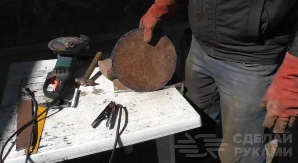 Подготовим переднюю и заднюю стенку печи, вырезав предварительно из толстостенного листа металла два круглых диска.