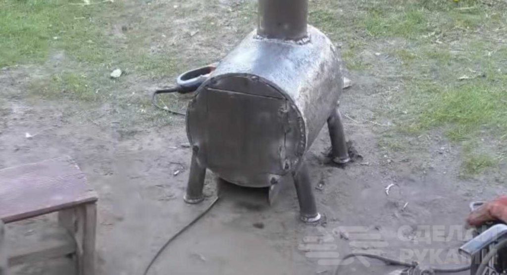 Ножки для печи отрезаем и устанавливаем в необходимые месте, так же сваривая их с основанием. Теперь приступим к изготовлению импровизированной каменки.