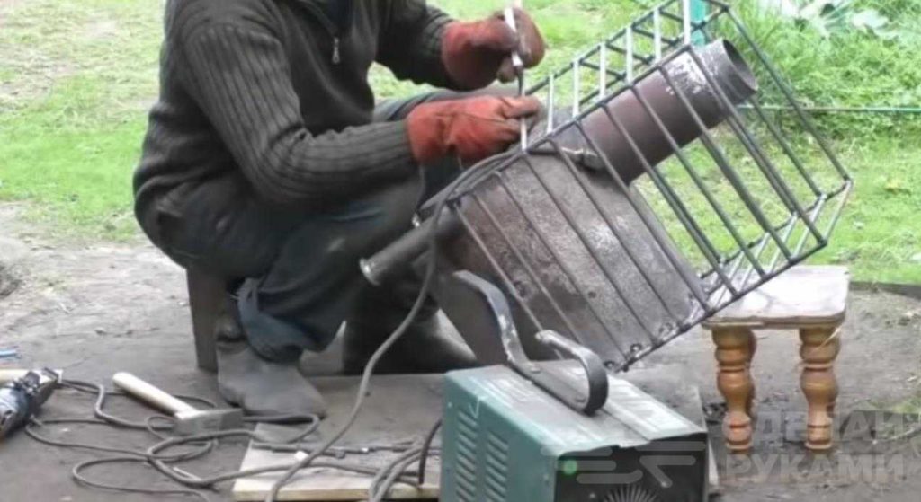 Для этого сгибаем прутки произвольным образом и свариваем их в виде клетки. Покрываем всё жаростойкой краской и наша печь готова. Подробное устройство и этапы работы смотрите на видео ниже.