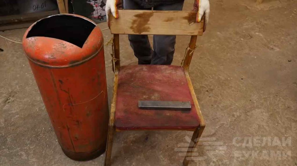 Более простой вариант — изготовление печи из подручных материалов, а точнее из газового баллона и остатков металлолома.