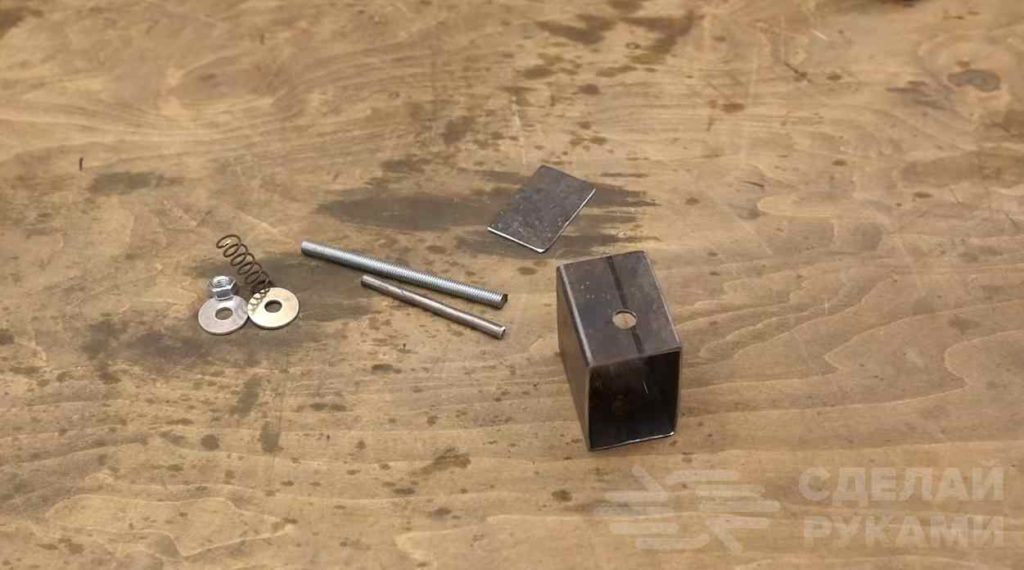На следующем этапе приступаем к изготовлению клапана. Отрезаем необходимый кусок прямоугольной трубы и просверливаем по бокам соосные отверстия.