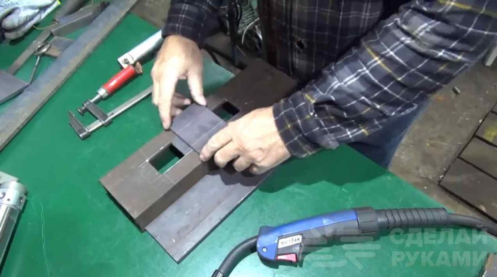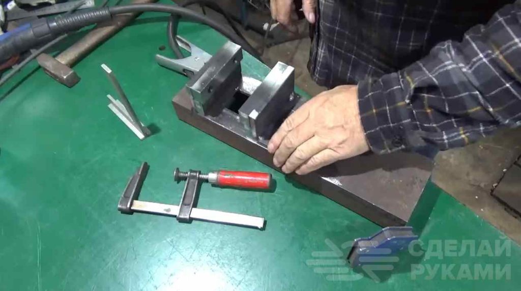 В центральной части основания (в данном случае — швеллера) необходимо сделать прорезь. После этого мастер изготавливает подвижную и неподвижную прижимные губки.