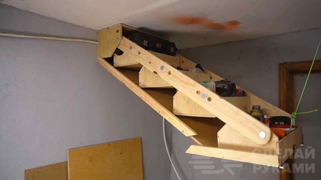 В этом обзоре рассмотрим процесс изготовления удобной в использовании подвесной полки, которая убирается под потолок. Это отличная идея для небольших мастерских и гаража.