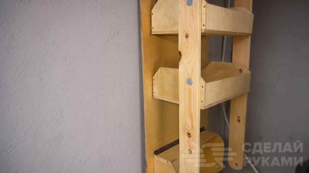 Рекомендуем также прочитать статью: как сделать практичный органайзер из фанеры и стеклянных банок. Это еще один из вариантов организации рабочего пространства в домашней мастерской и гараже с целью экономии места.