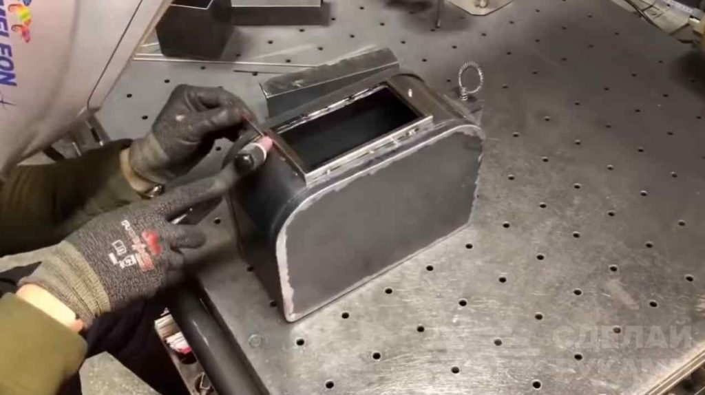 После этого вырезаем в корпусе еще одно отверстие, и привариваем по контуру рамку для смотрового стекла.