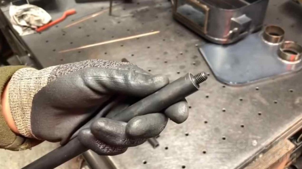 Сами ножки изготавливаем из отрезков круглой трубы, в которые запрессовываем болты, предварительно сточив их шляпки до нужного диаметра. Болты обвариваем.