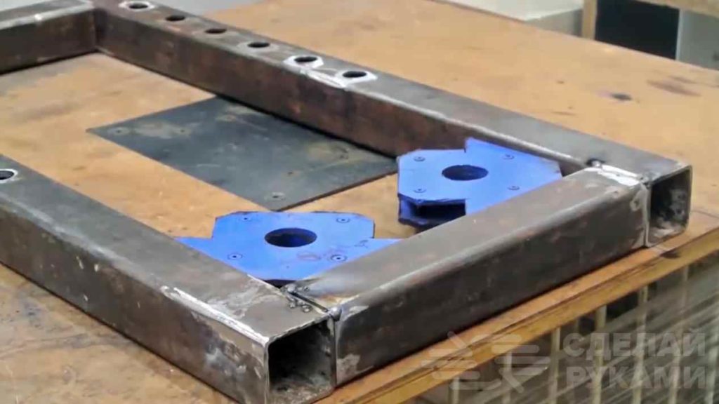 После этого необходимо будет изготовить еще опорную площадку, на которую будут устанавливаться заготовки и детали. Для этого также используем профильную трубу.