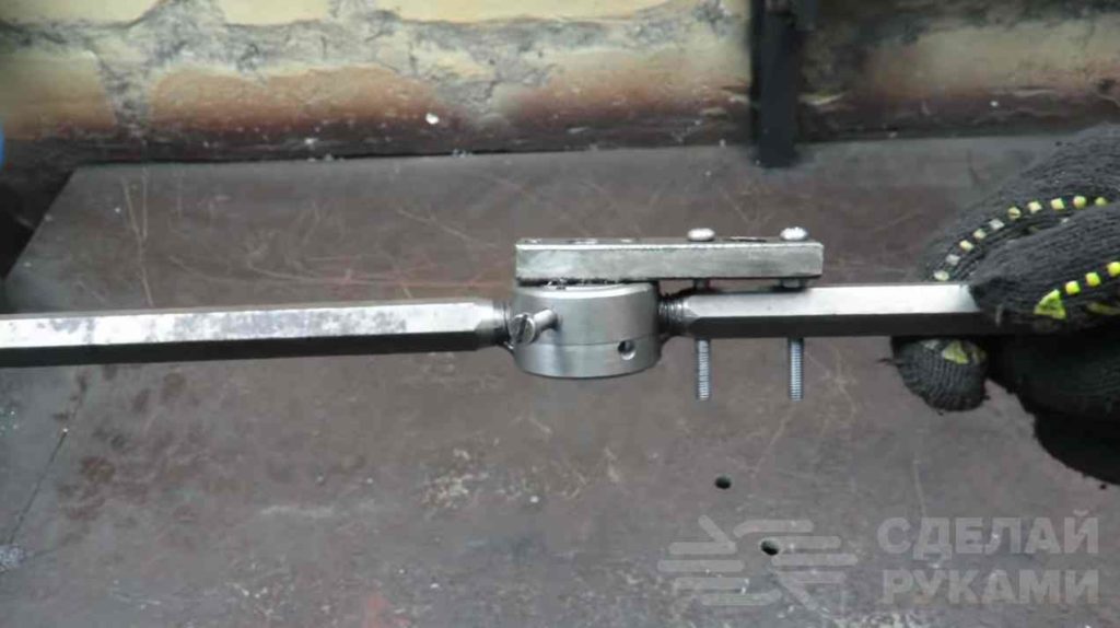 Из квадратного прутка автор изготавливает две ручки, на конце которых нужно сделать проточку (на токарном станке) и тоже нарезать резьбу. Также в держателе необходимо просверлить отверстия для крепления плашек.