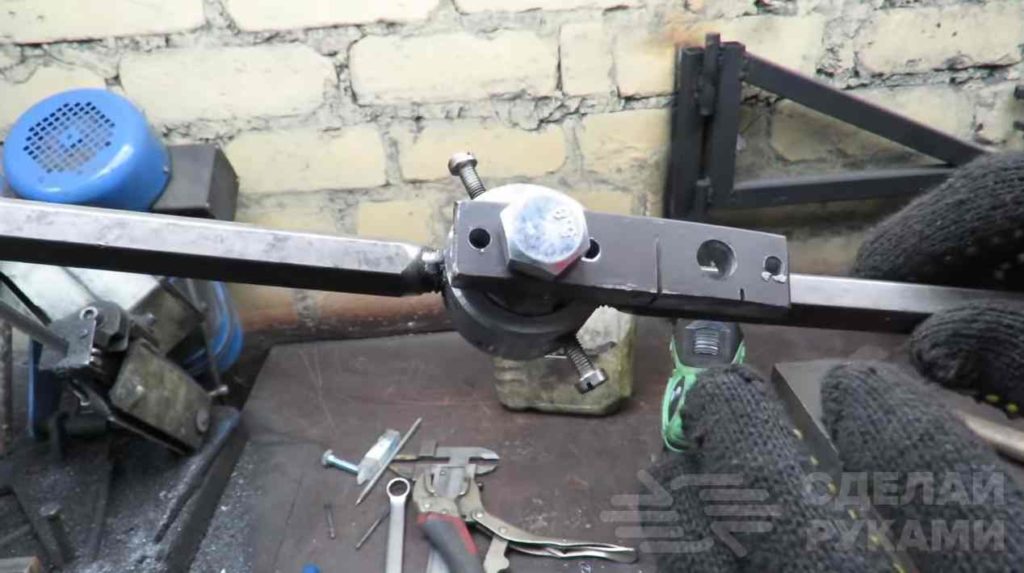 На следующем этапе в держателе нужно будет просверлить два соосных отверстия, и нарезать в них резьбу.
