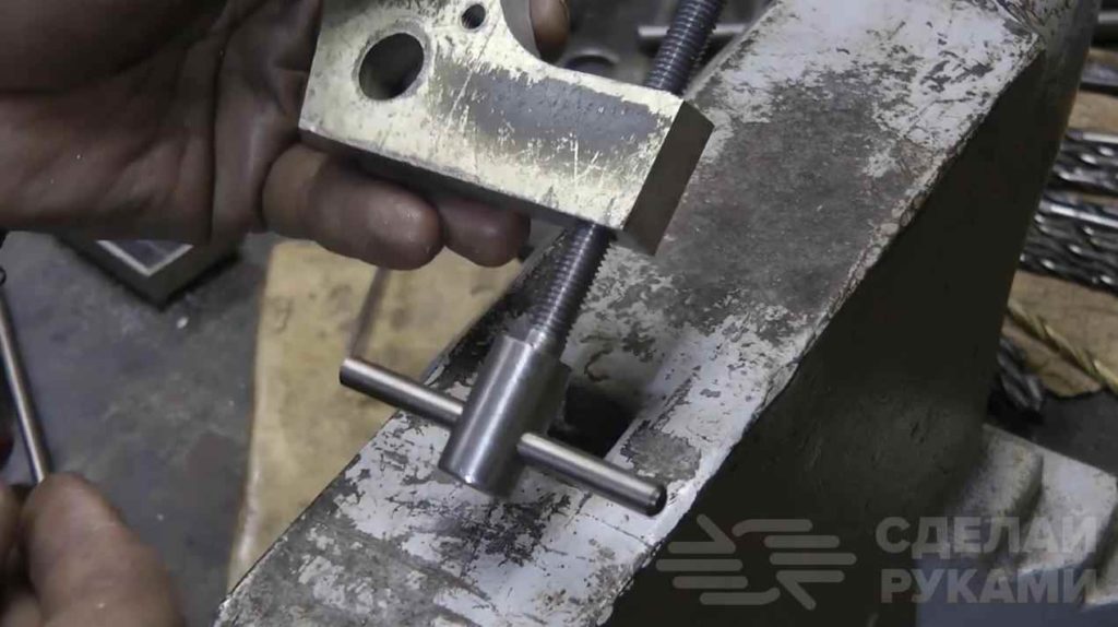 Первым делом мастер делает прижимную часть конструкции, с помощью которой самоделка будет крепиться к столу.