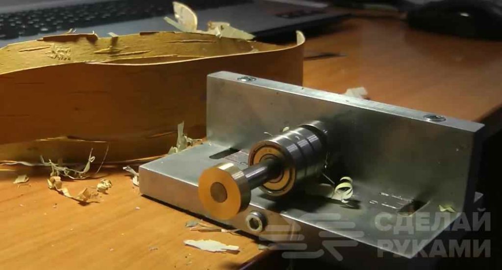 Для изготовления данного приспособления автор использует алюминиевые пластины. Помимо этого, потребуются еще подшипники и режущий нож.