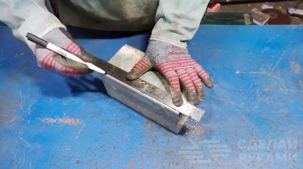 На следующем этапе в заготовках, вырезанных из профильной трубы, необходимо будет вырезать «окна» треугольной формы.