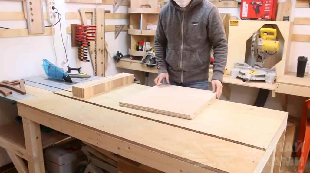 Первым делом необходимо будет сделать основание. Для этого отрезаем два листа фанеры и склеиваем их вместе на столярный клей ПВА.
