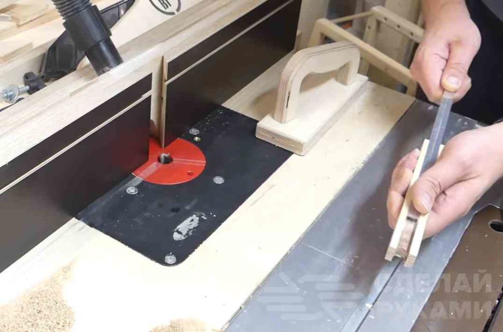 Первым делом от куска фанеры необходимо будет отпилить брусок подходящей длины. Потом в заготовке надо сделать продольный паз. В него устанавливается алюминиевый профиль.