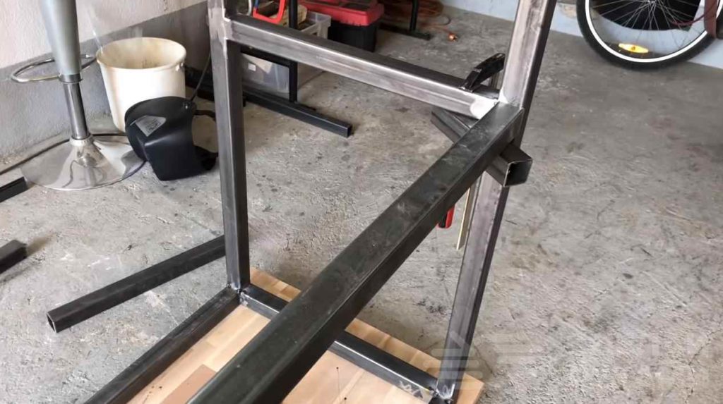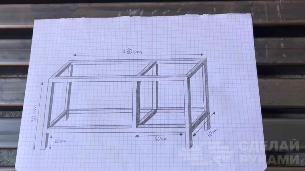 Далее нарезаем заготовки из профильной трубы и свариваем из них каркас в соответствии с чертежом.