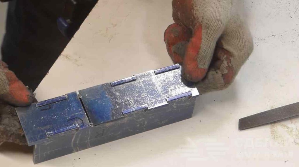 Обратно соединяем детали и для более плотного соединения развальцовываем все «ласточкины хвосты» и заполировываем их на наждаке.