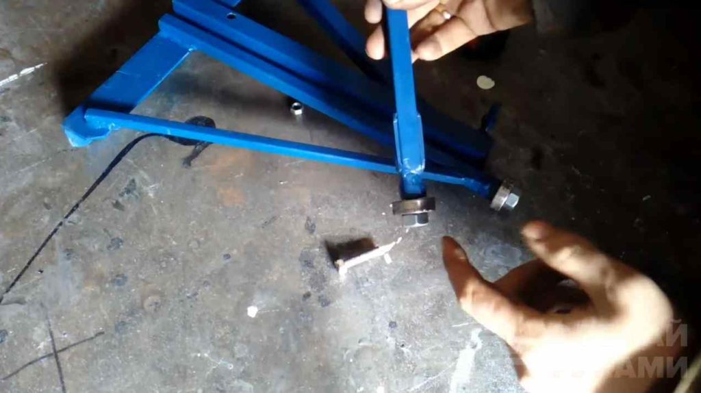 Дополнительно автор приваривает усиление. С одной стороны — кусок квадрата, с другой — профтруба. Но в принципе можно использовать все, что найдется под рукой.