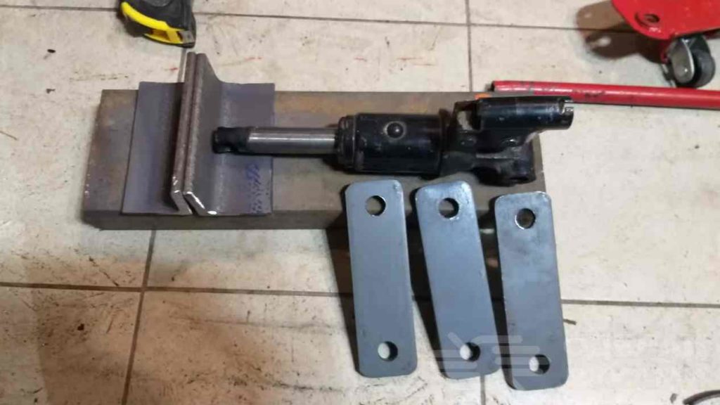 Материалы и инструменты необходимые для работы: гидравлический домкрат, швеллер подходящего размера, разные болты, мощная пружина, УШМ (болгарка) и разметочный инструмент.