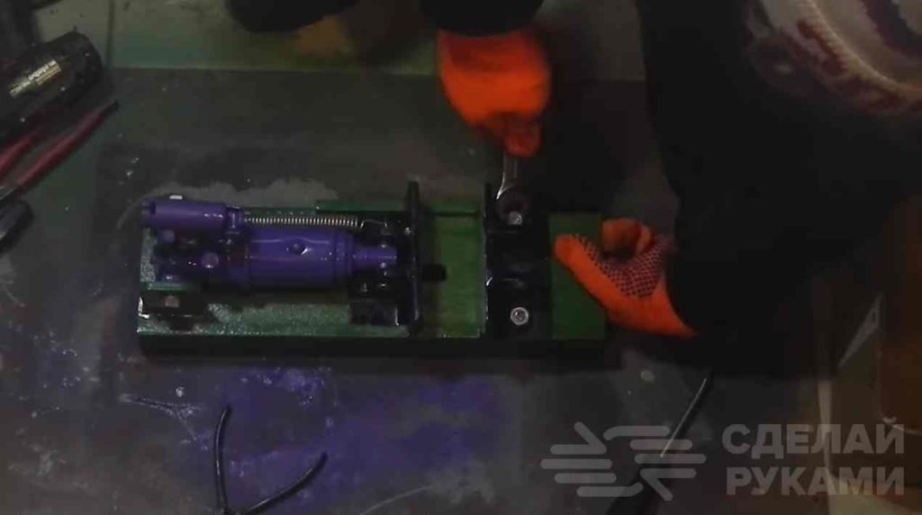 Теперь можно приступать к окрашиванию. После покраски обратно собираем всё воедино, обязательно смазав все движущиеся части. Самоделка готова к использованию.