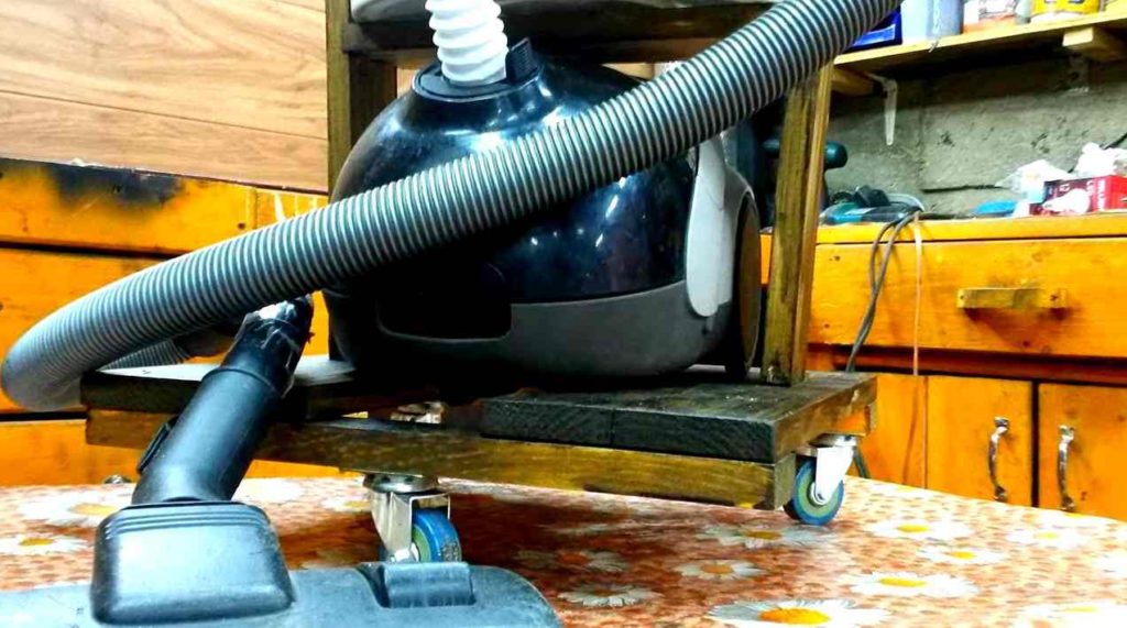 Собранную конструкцию необходимо закрепить на основании. Обратите внимание, что опорная перемычка должна располагаться на некоторой высоте, чтобы под ней можно было установить пылесос.