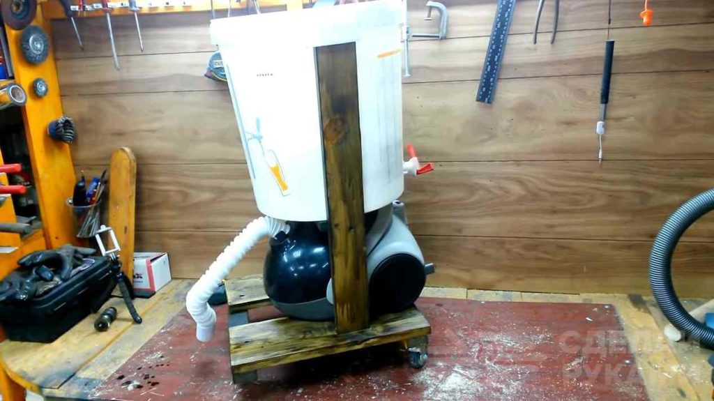 Автор дополнительно установил циклон на площадку с колесиками, чтобы конструкция была мобильной.