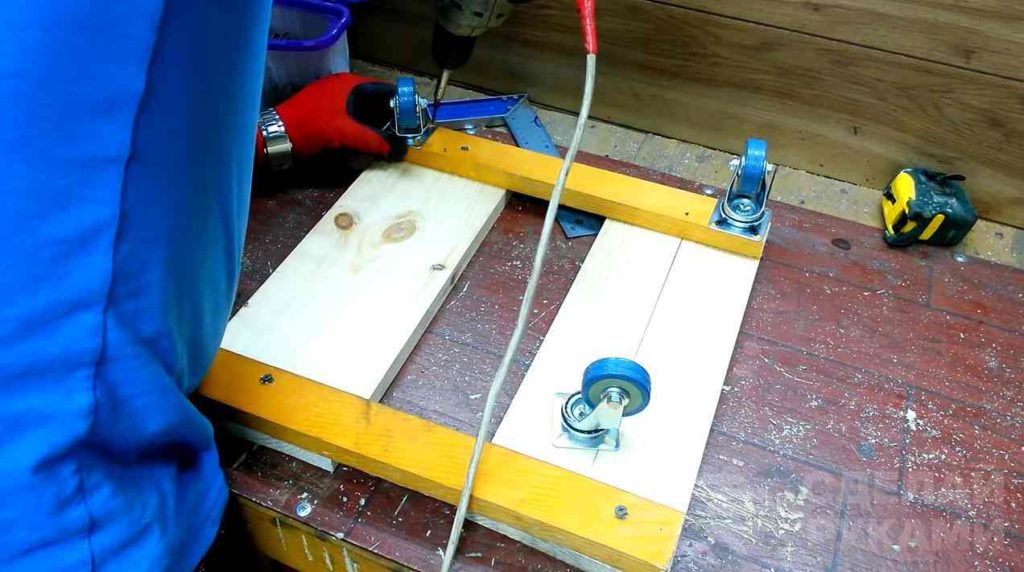 На следующем этапе соединяем доски вместе с помощью саморезов. После этого надо будет прикрутить колесики. Площадка готова.