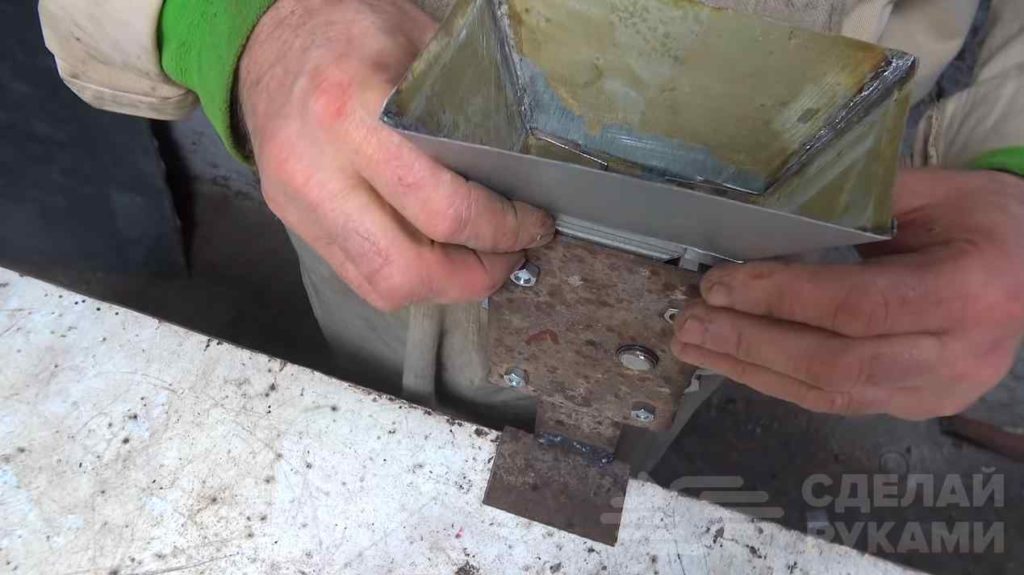 На последнем этапе останется только изготовить из тонкого листового металла приемную воронку. Устанавливаем ее сверху корпуса.