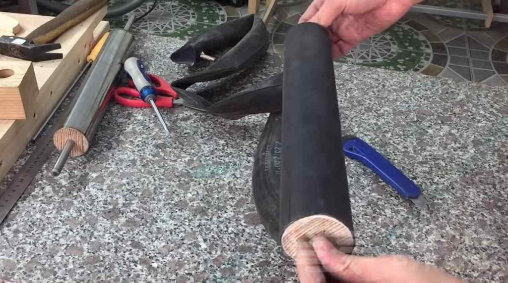 Для их изготовления нам понадобиться вал, изготовленный из трубы подходящего диаметра и завальцованных деревянных отрезков по краям.