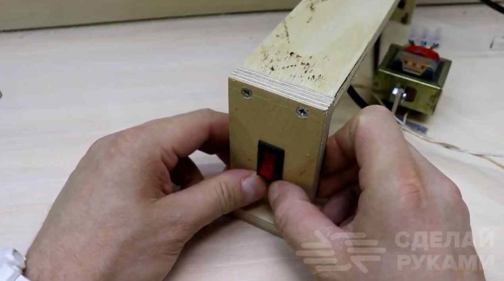 Шнур для питания всей системы можно взять от фена или другого нерабочего электроприбора. Дополнительно автор использует понижающий трансформатор, который преобразовывает 220 вольт из розетки в 12 вольт переменного напряжения.