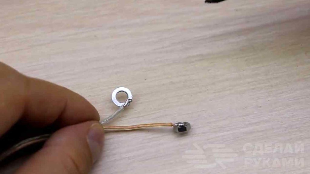 В нижней части места крепления нити нужно будет изолировать. Для этого мастер делает нижнее крепление из двух кусочков фанеры.