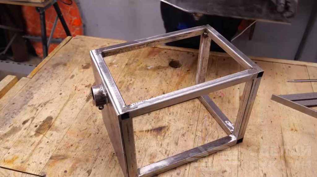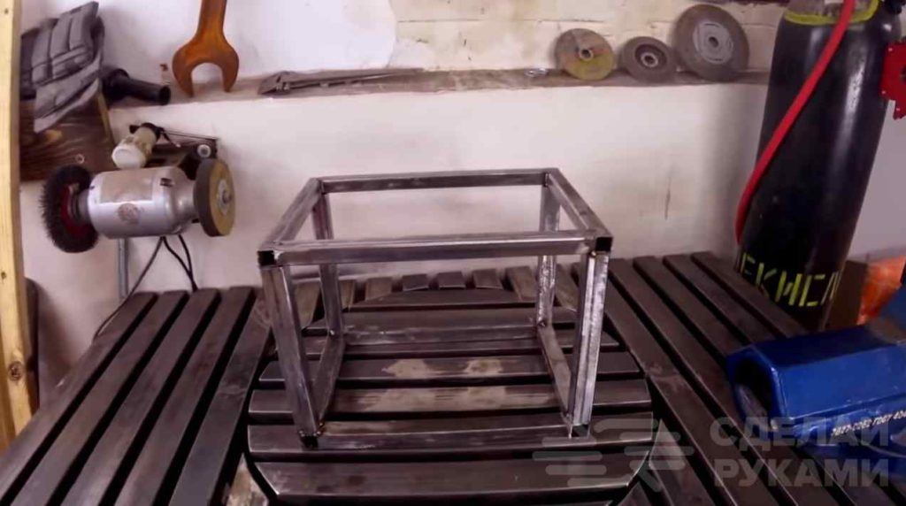Далее необходимо будет отрезать заготовки из профильной трубы — свариваем из них каркас будущего станка. Сварные швы зачищаем.