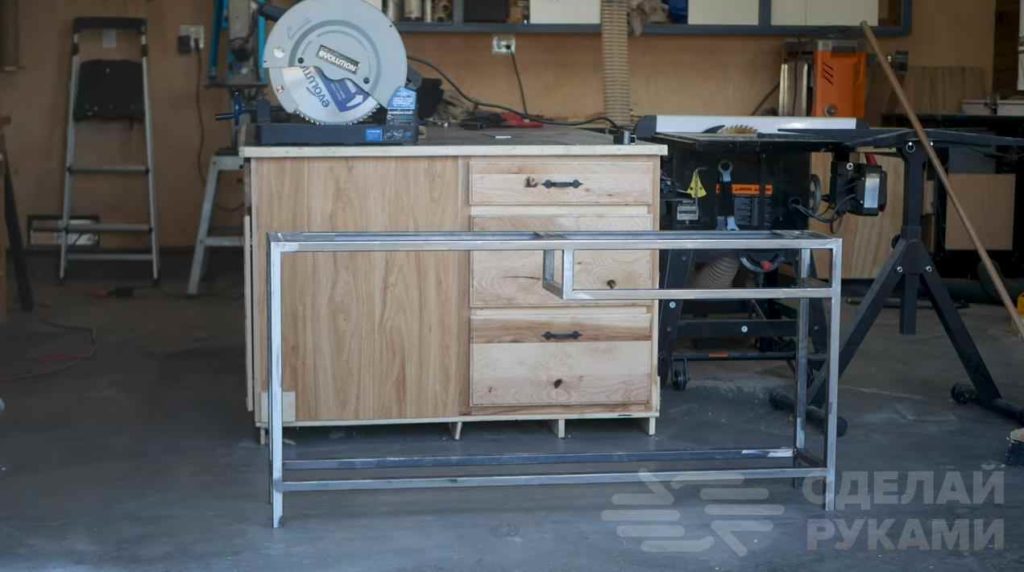 Никто не запрещает и не мешает мастеру изготовить верстак самостоятельно из различных обрезков профильных труб и досок.