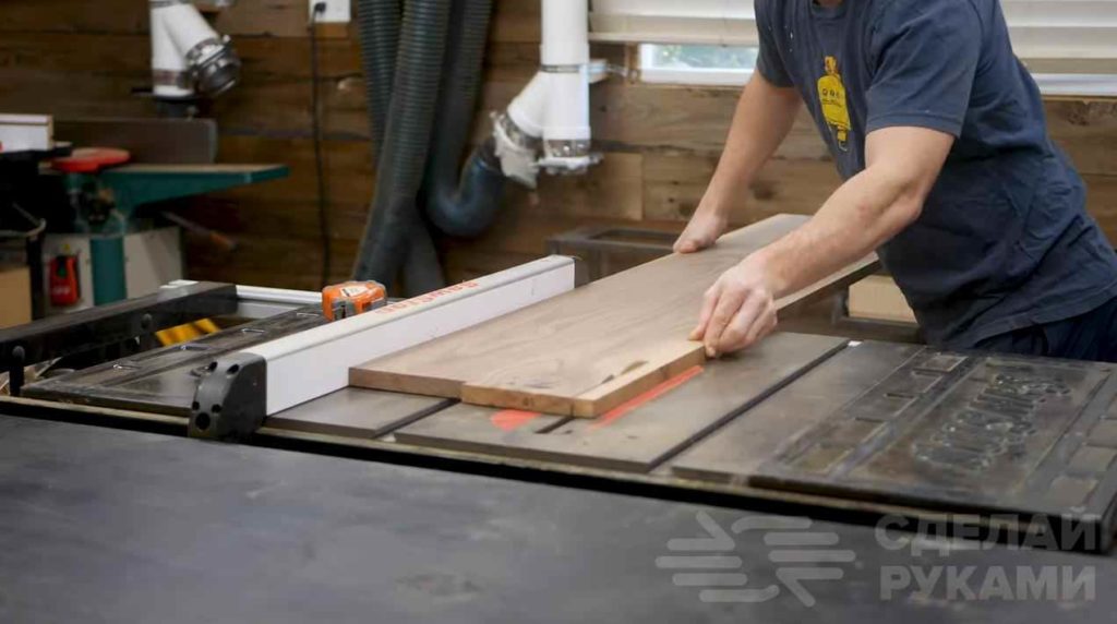 Теперь можно изготовить столешницу. Для этого склеиваем пару досок по всей длине. Для большей надёжности можно соединить их при помощи столярного соединения «ласточкин хвост».