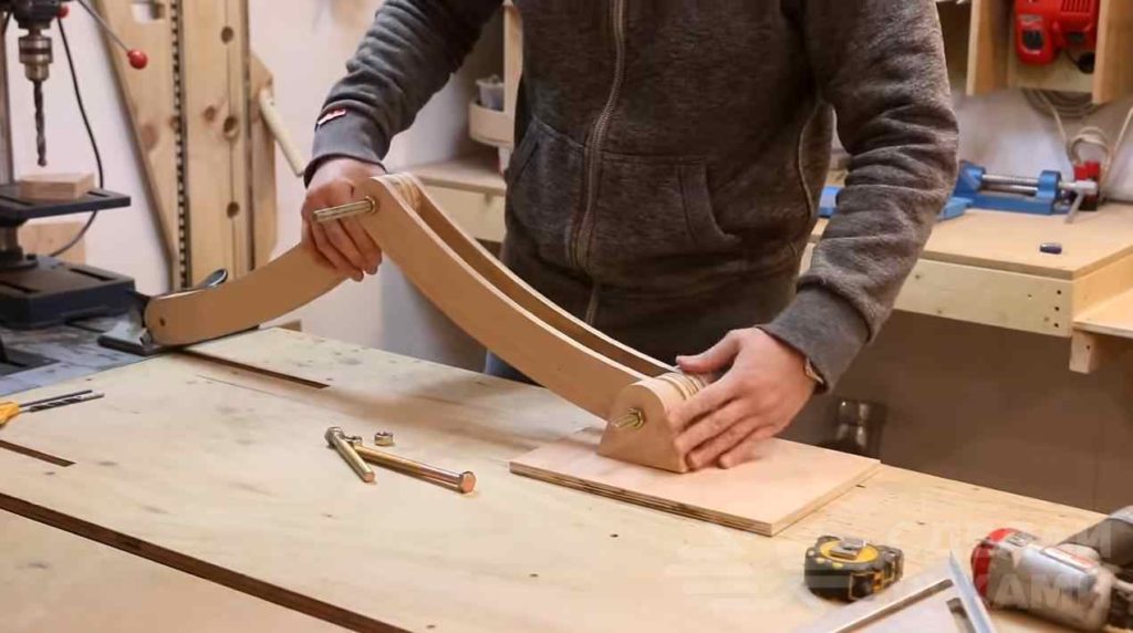 Для соединения деталей между собой автор использует болты с гайками. Все элементы конструкции шлифуем (при желании можно покрасить или покрыть лаком), после чего собираем.