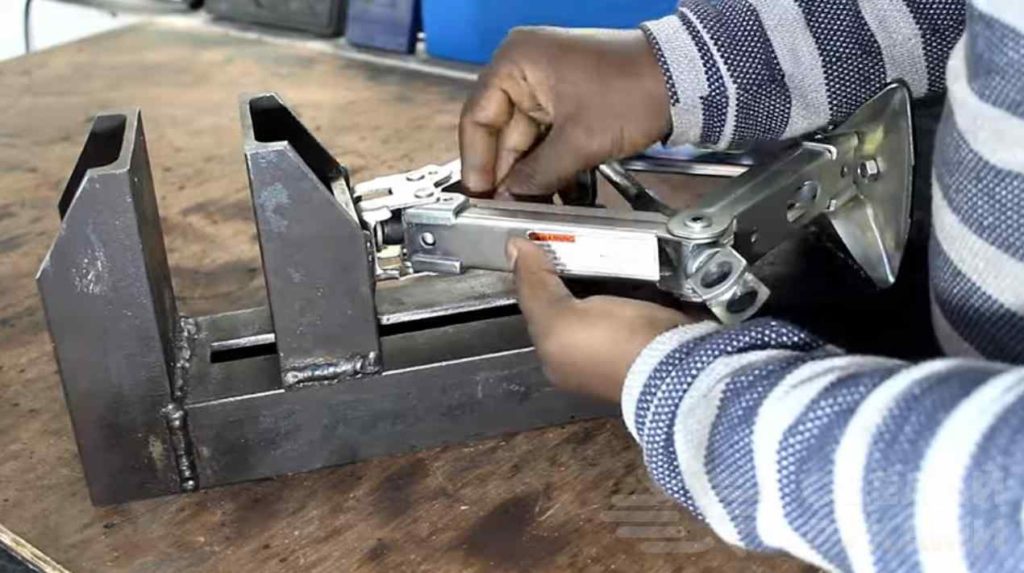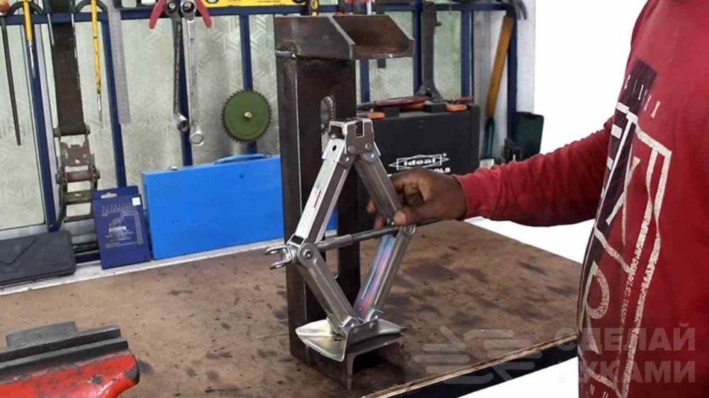 Сделать слесарные тисы для мастерской или гаража совсем несложно. Например, в данном обзоре автор показывает, как сделать это полезное приспособление из механического домкрата.