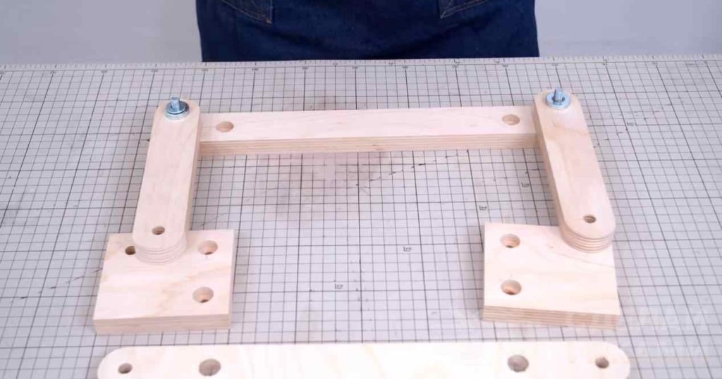 Далее вырезаем четыре длинных отрезка из фанеры и соединяем их между собой при помощи болтовых соединений и металлических трубочек.