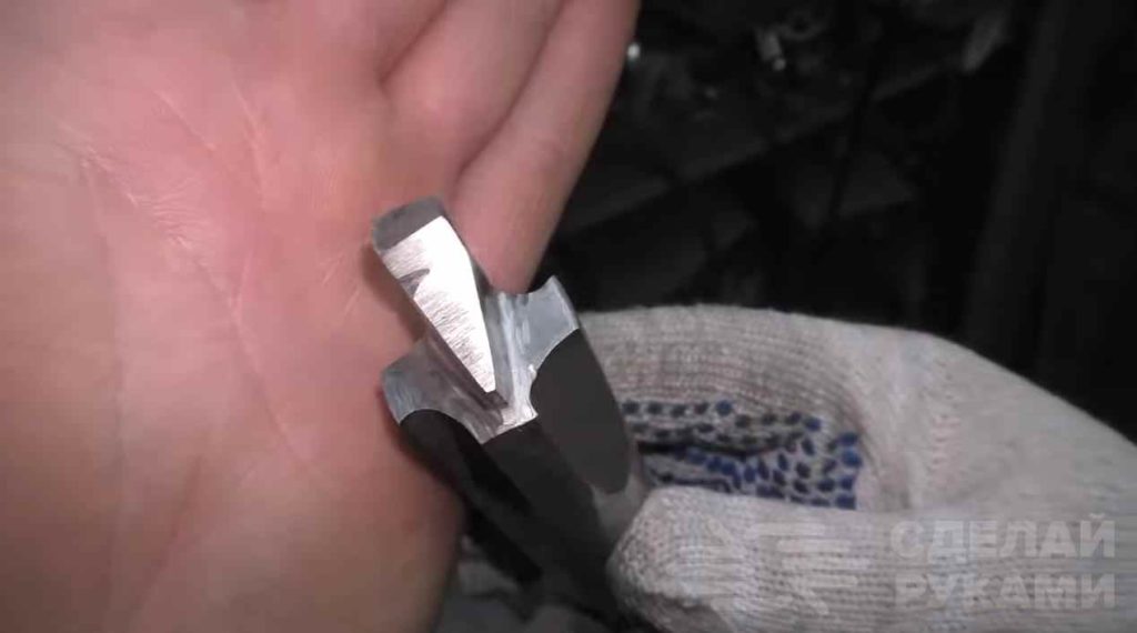 На следующем этапе автор придает нижней части метчика треугольную форму (по форме зуба ножовки). Также нужно сделать треугольный вырез на куске рессоры.