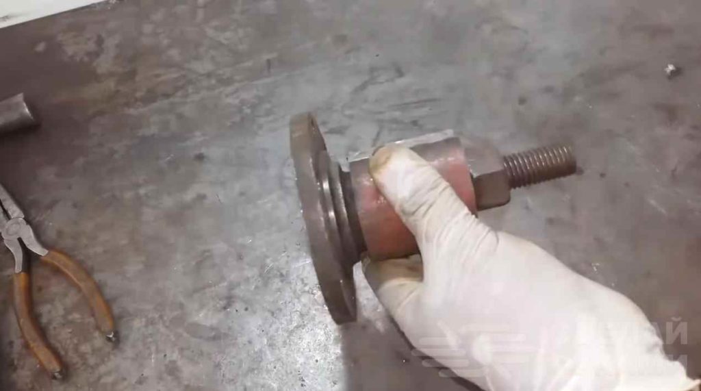 Получившуюся втулку с подшипниками надеваем на шпильку, которая приварена к фланцу, и фиксируем ее с помощью гайки.
