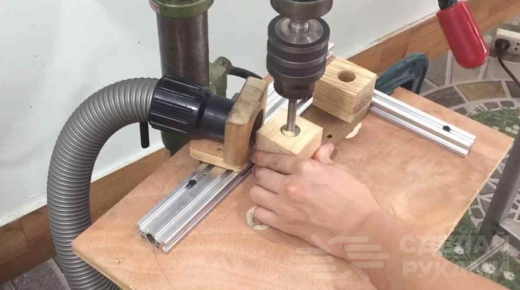 Рекомендуем также прочитать статью-обзор: как своими руками сделать полезное приспособление для дрели из мебельной направляющей. При помощи самоделки можно без проблем просверлить отверстия точно под углом 90 градусов.
