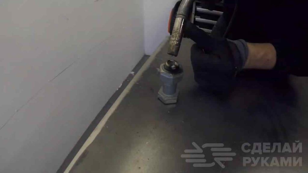 Привариваем гайку к трубе необходимого диаметра и отрежем необходимую длину данной трубы.