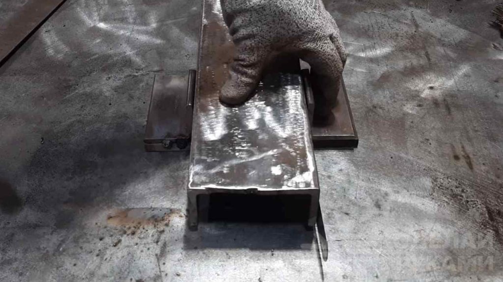 С боков устанавливаем пару уголков с небольшим зазором. Также привариваем их. Поверх движущейся части укладываем какую-либо картонку для зазора и свариваем боковые уголки пластиной металла.