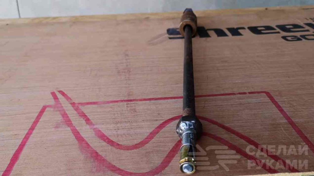 Надеваем на удлинитель заранее подготовленную болванку, после чего вкручиваем конец с резьбой в гайку.